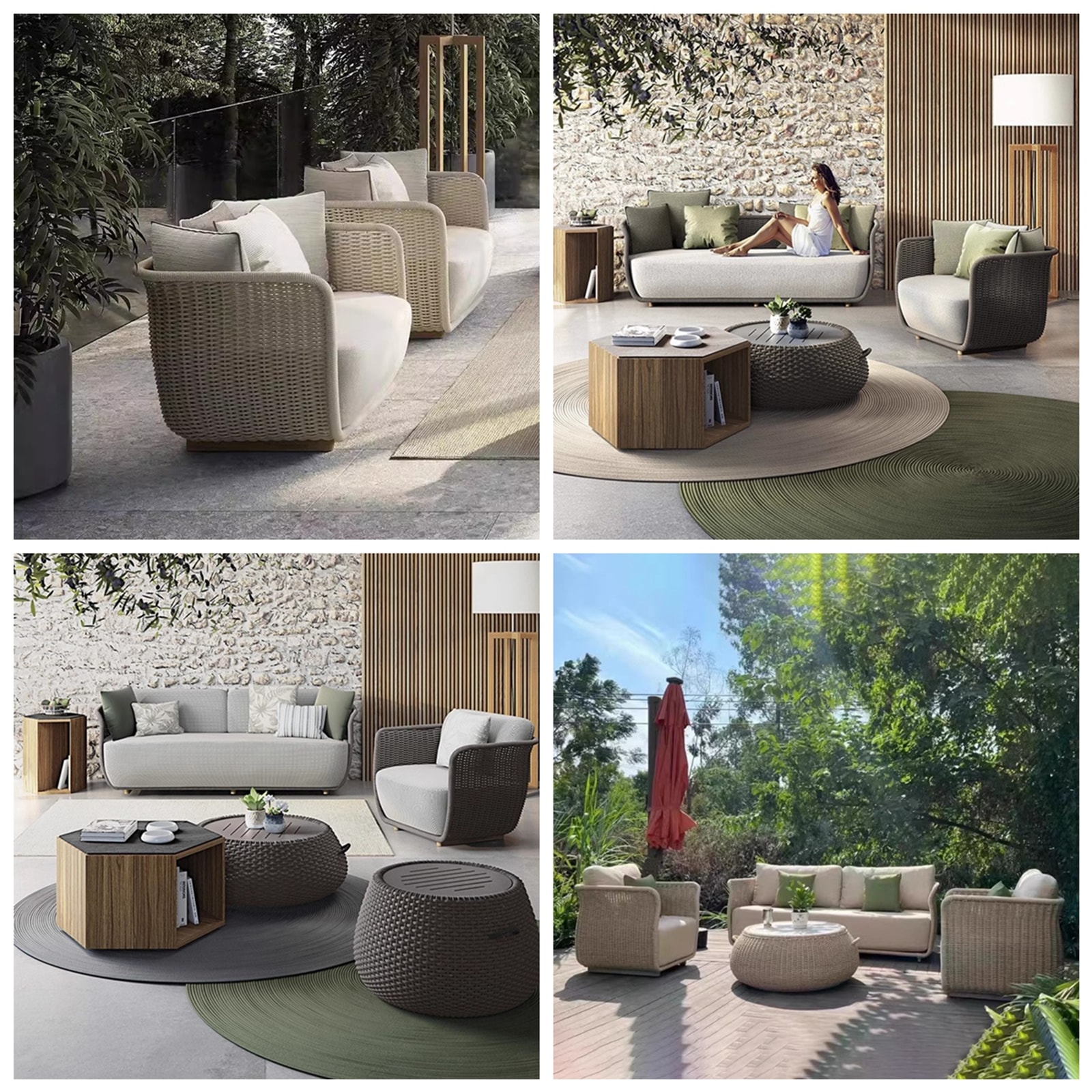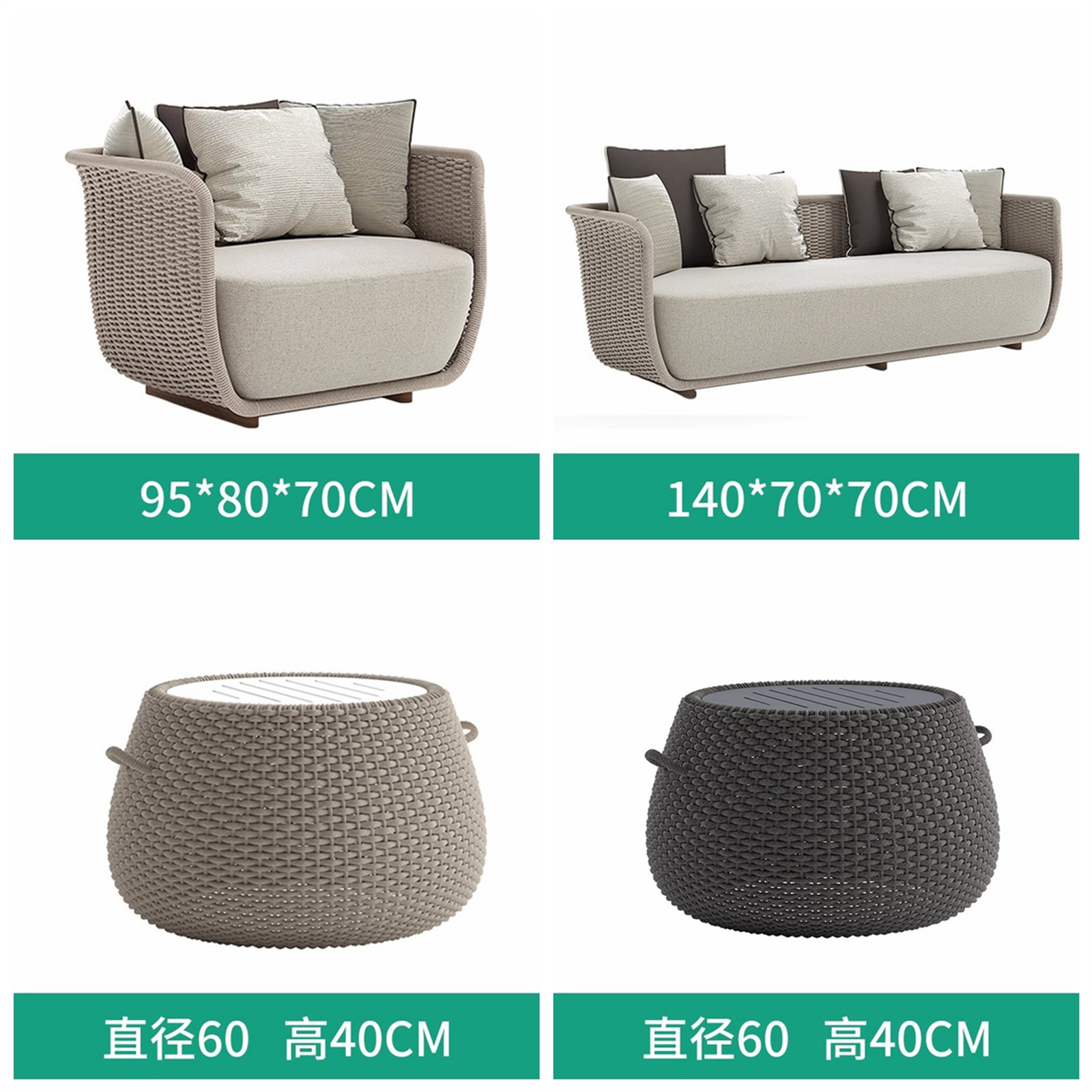 Relax in the summer sun with a refreshing drink or enjoy a coffee on our spacious rattan furniture set, our rattan furniture set are both stylish and comfortable. This patio sofa includes a 3-seater sofa, 3 single sofas and a coffee table, perfect for hosting small outdoor gatherings or just lounging outside with a good book. With rattan frames and fresh cushion colors, our patio furniture sets bring a timeless look to any outdoor space and are durable.
